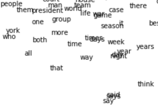It’s hard to visualize an \(n\)-dimensional space, but there are algorithms for mapping the embeddings to two dimensions.