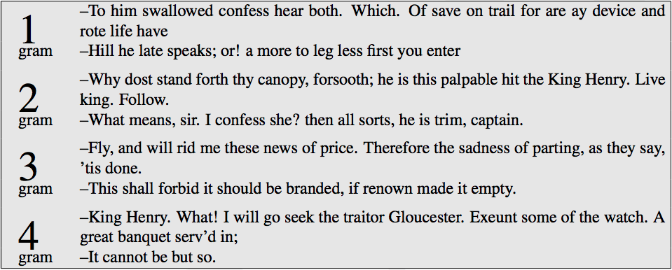 The phrases we’re counting are called n-grams (where n is the length), so this is an n-gram language model. (Note: the above example is considered a 3-gram model, not a 2-gram model!)