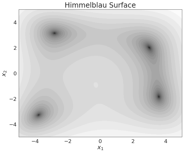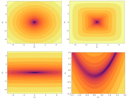In 1D and 2D, we can visualize \(f\) by drawing plots, e.g. surface plots and contour plots