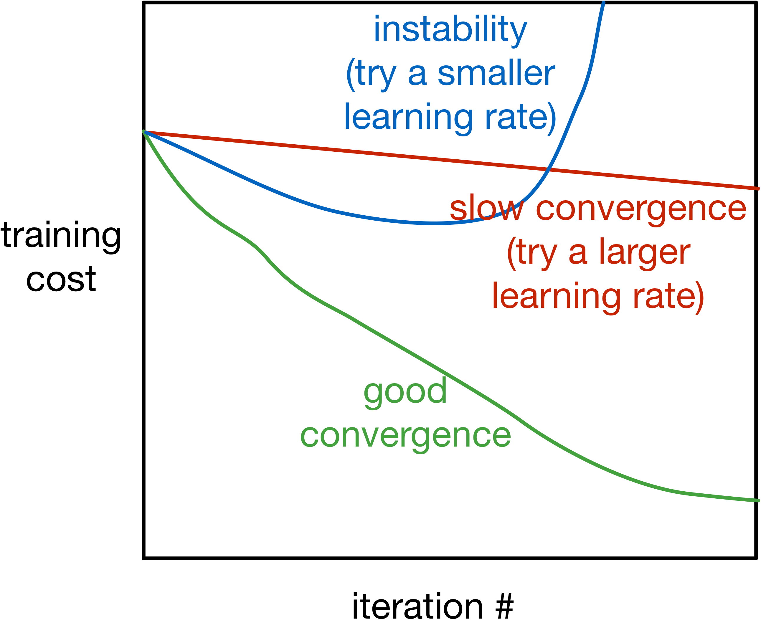 The learning rate \(\alpha\) is a hyperparameter we need to tune. Here are the things that can go wrong in batch mode: