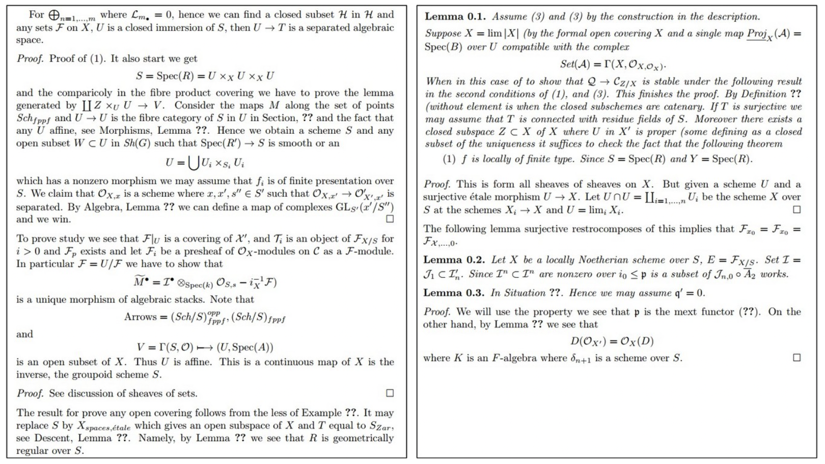 RNNs are good at learning complex syntactic structures: generate Algebraic Geometry LaTex source files that almost compiles:
