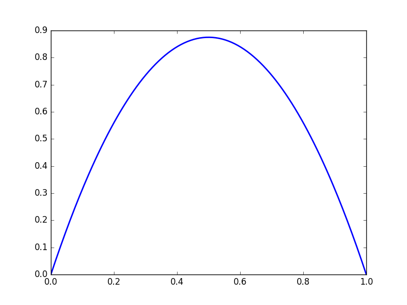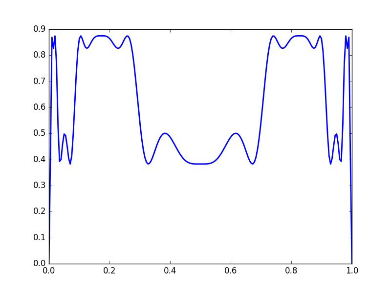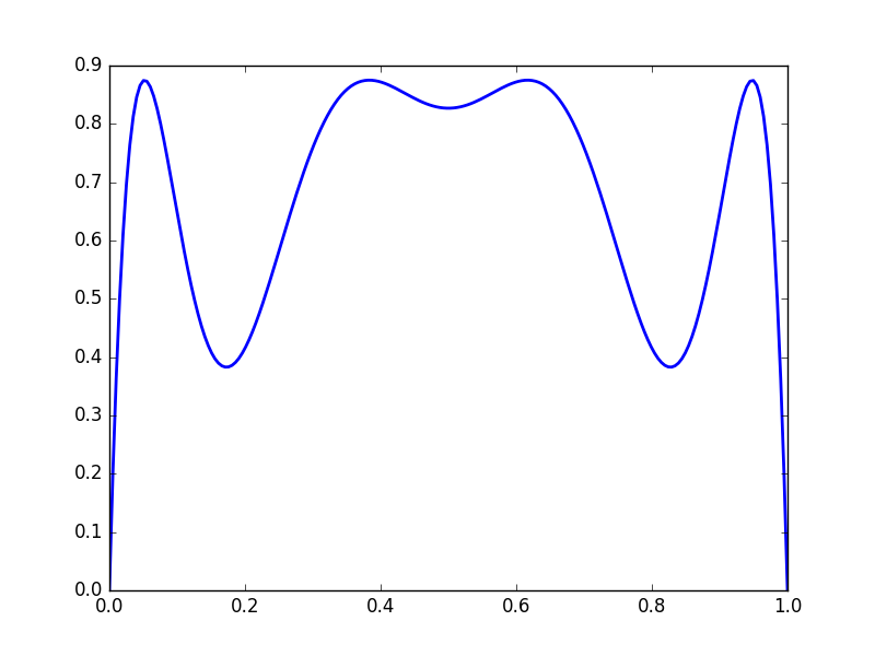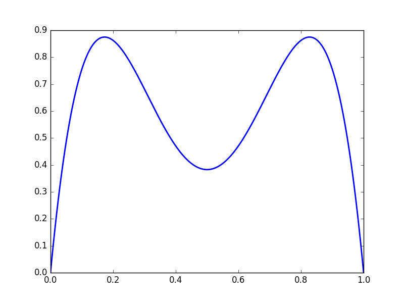 We get complicated behaviour from iterated functions. Consider \(f(x) = 3.5x(1-x)\)