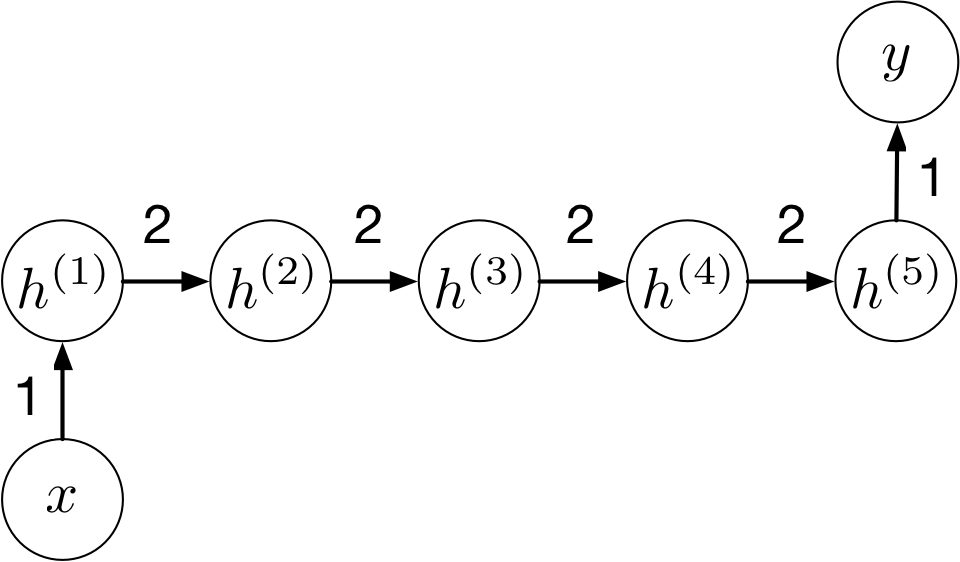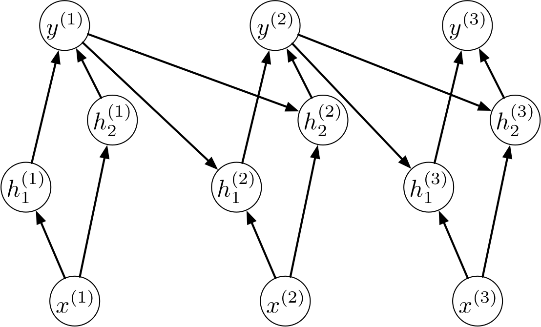 | \(y^{(t-1)}\) | \(x^{(t)}\) | \(h_1^{(t)}\) | \(h_2^{(t)}\) | \(y^{(t)}\) |