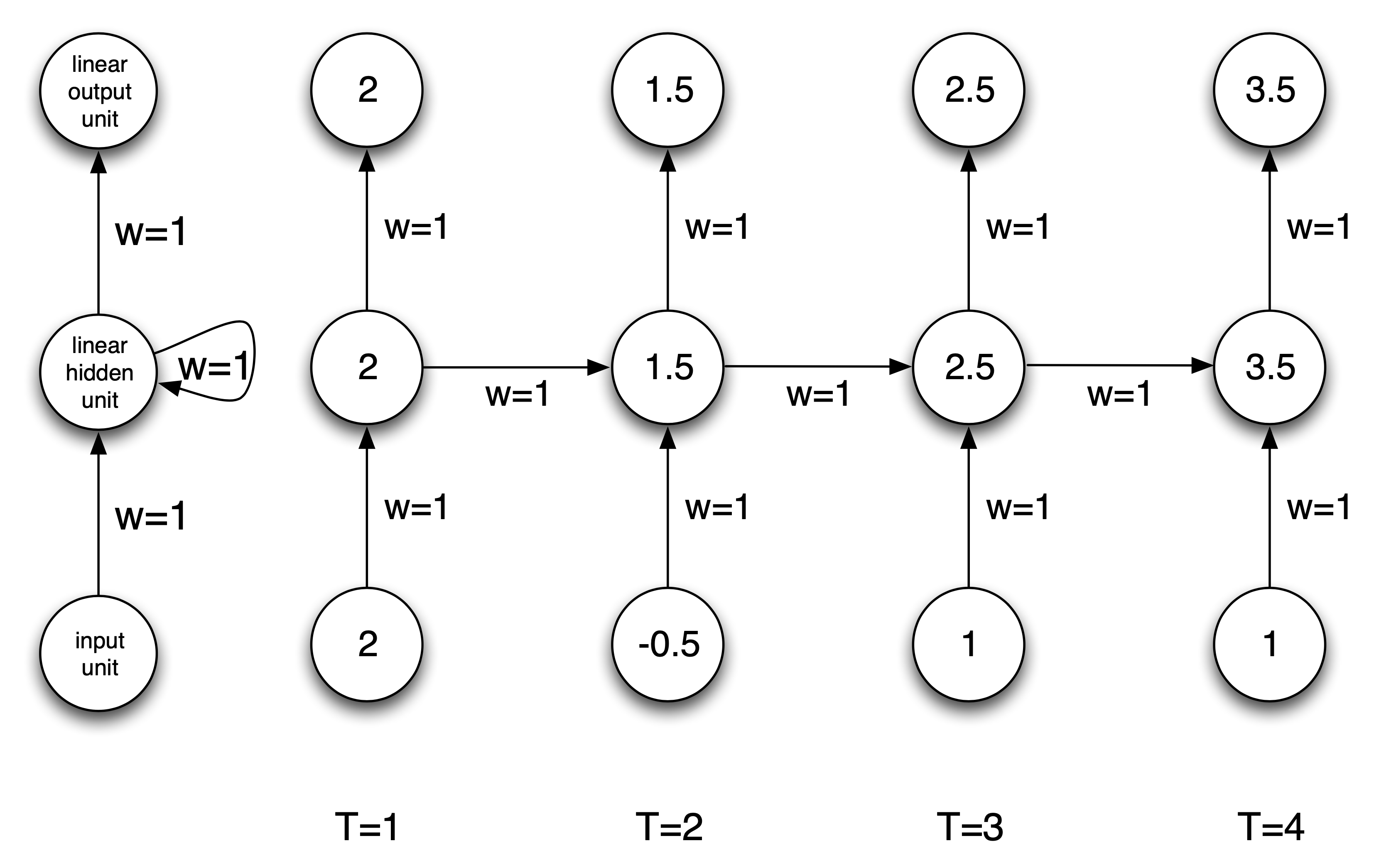 Consider a univariate version of the RNN: