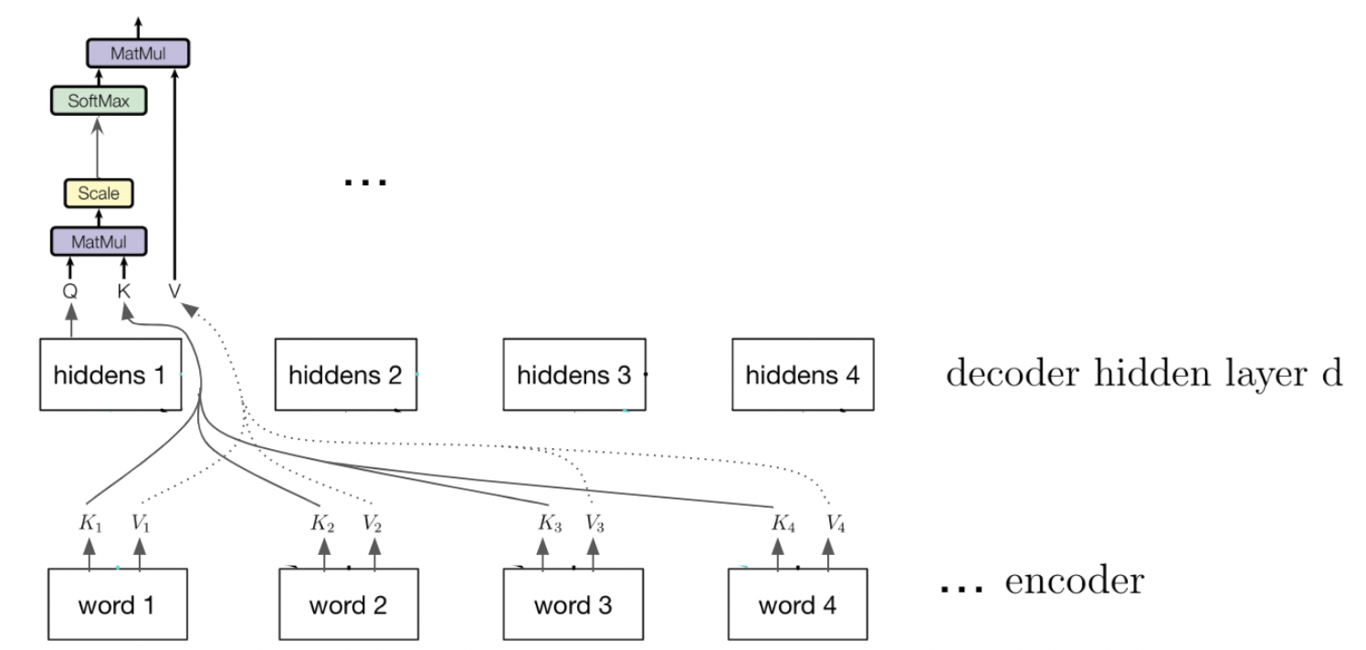 Transformer models attend to both the encoder annotations and its previous hidden layers.