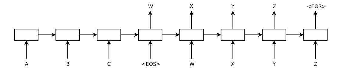 The network first reads and memorizes the sentences. When it sees the “end token”, it starts outputting the translation. The “encoder” and “decoder” are two different networks with different weights.