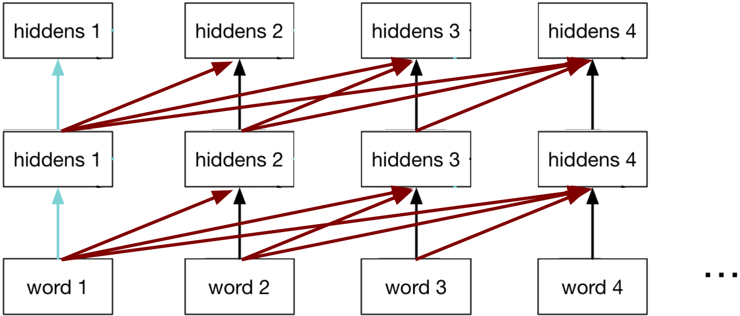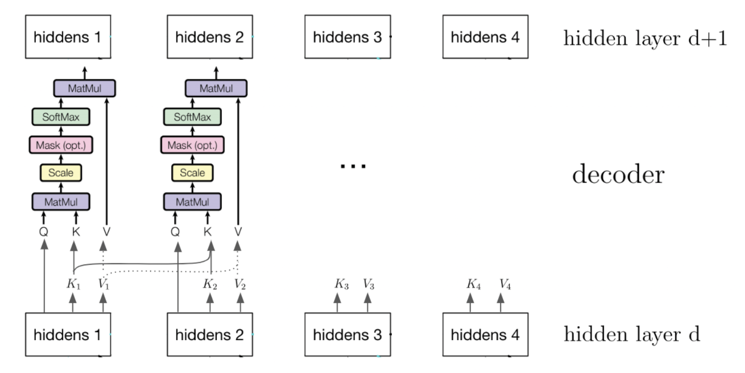 Transformer models also use “self-attention” on its previous hidden layers. When applying attention to the previous hidden layers, the causal structure is preserved:
